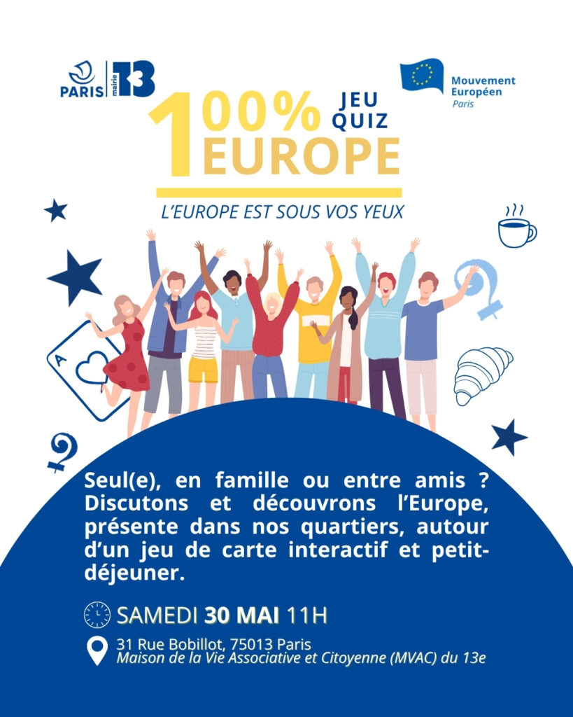 Participez à un atelier-jeu collaboratif pour découvrir concrètement comment l’Union européenne agit dans notre quotidien, dans nos rues, à Paris et dans nos vies. Nous découvrons et nous décryptons ensemble.